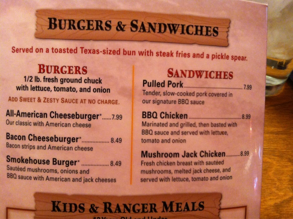 Fresh chicken breast with saut-ed mushrooms. melted jack cheese, lettuce, tomato and onion served on a Texas-sized bun with steak fries and a pickle spear